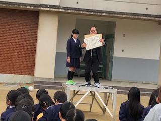 続いて、学校をあげて歯の健康に取り組んでいることについて、表彰状の紹介がありました。