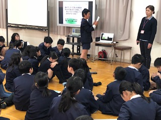 今日(2月21日)の3・4時間目に認知症サポートキャラバンの方を招いて、認知症サポーター研修会がありました。