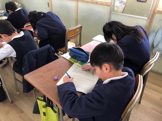 5年生はこの単元ででHi Friend!が終わりました。そこで、今日の後半の時間から、Writingに取り組みました。子音二つと母音が一つの単語を四線に丁寧に書いていく練習をしました。次年度からの英語学習では、書くことが取り入れられます。それに先行しての活動になりました。