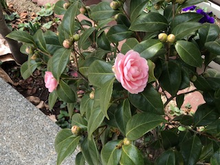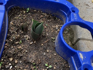 校内の桜の花芽はまだ固いですが、椿が咲き始め、一年生が植えているチューリップも芽を出しました。