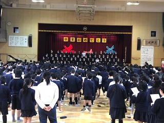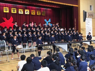 引き続き、「友〜旅立ちの時〜」の全員での合唱、6年生からの合奏、6年生のことばのようすをご覧ください。