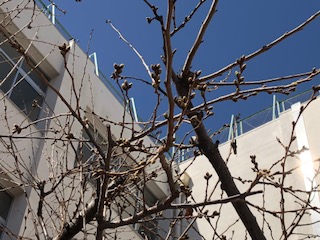 校内の桜の花芽が膨らんできました。学習園に目をやると、管理作業員さんが丹精になさっている葉野菜が色鮮やかな花を咲かせています。