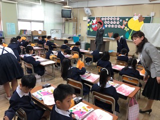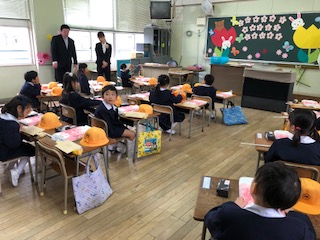入学式が終わり、新しい教室で、保護者さんを待っている子どもたちの様子です。