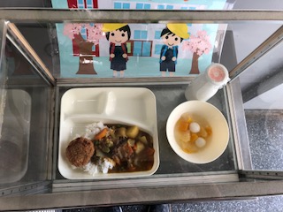 カツカレーと白玉だんごです。とてもおいしそうです。