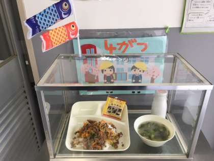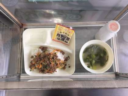 給食メニューは、ビビンバ・トック・いり黒豆です。子どもたちの人気メニューの一つです。