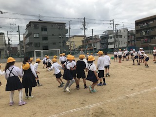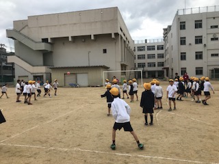 今週の集会は、3年生と5年生でドッジボールをしました。
