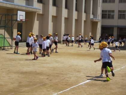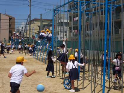 今日(11日)は朝から快晴で、子どもたちは休み時間に運動場へ出て、仲良く遊んでいます。