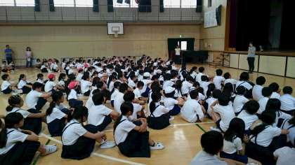 明日のしらさぎオリエンテーリングに向けて、並び方の練習をしました。リーダーを先頭にグループ別で並び、明日の持ち物やタイムスケジュールについての話を聞きました。