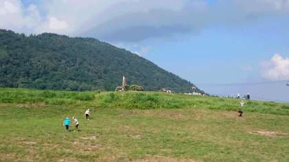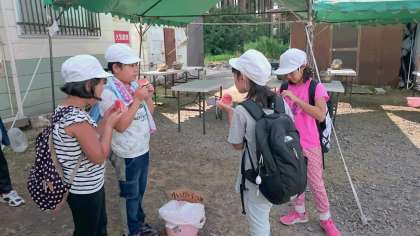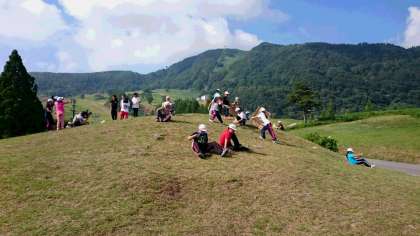 その後は高原遊びです。快晴の中、元気に虫探しや芝すべりを楽しんでいます。