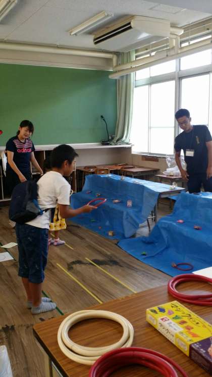 各教室には輪投げやプラバン体験などたくさんの出店あり、新平の子どもたちもスタンプカードを片手に来てくれました!