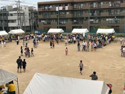 9月2(日)に毎年恒例の「PTA親子ふれあい夏まつり」が開催されました。前日の雨でグラウンドの状態が心配されましたが、無事にスタートしました。