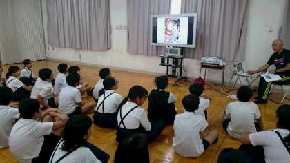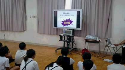 広島でたくさんのことを学ぶために、平和学習を進めています。この日は、平和記念資料館から借りた資料で原子爆弾について学びました。