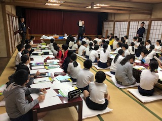 昨日の活動です。夕食後は、平和学習のまとめをしました。1日目は、たくさんのことを学びました。初めて知ったこと、改めて感じたこと、平和について思ったことなど、1人ひとりワークシートに書きこみました。その後は、ボランティアガイドさんに手紙を書きました。みんな丁寧な字で心を込めて書きました。