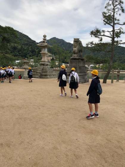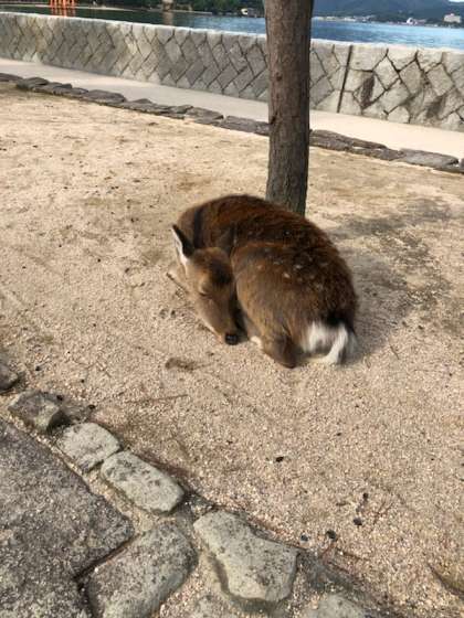 宮島に着きました。厳島神社を目指して歩きます。途中、鹿もいました。