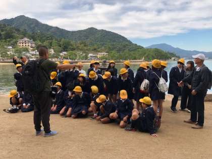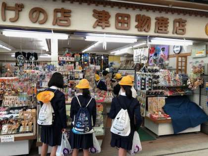 厳島神社の見学の後は、待ちに待ったお土産選びです。記念写真も撮りました。