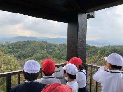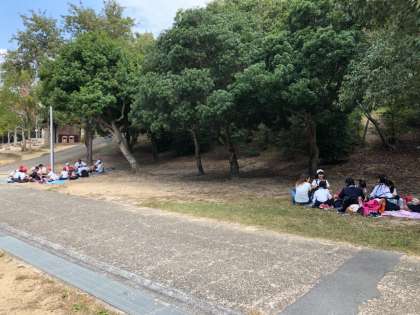 錦織公園に着きました。ドレミの小橋や展望台へ行きました。展望台からの景色がとても素晴らしいです。その次はお弁当タイムです。