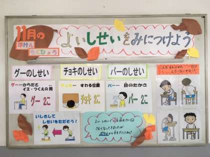 11月の保健目標は「よい姿勢を身につけよう」です。