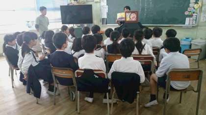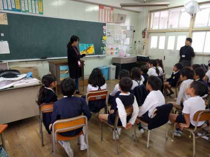 お話会がありました。平野図書館からボランティアの方が来てくださり、3年生に絵本や紙芝居の読み聞かせをしてくださいました。