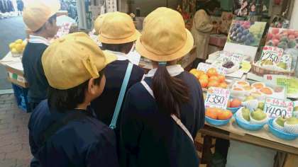 今日は、3年生が東住吉区にある駒川商店街へ社会見学に行きました。駒川商店街は、多くのお客さんで賑わっていました。
