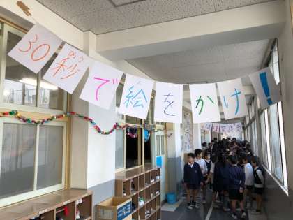 新平野西小まつりでは、各学級工夫を凝らしたゲームが用意されていました。1年生も初めてのお店作りをがんばりました。6年生のお化けやしきは大人気で行列ができていました。