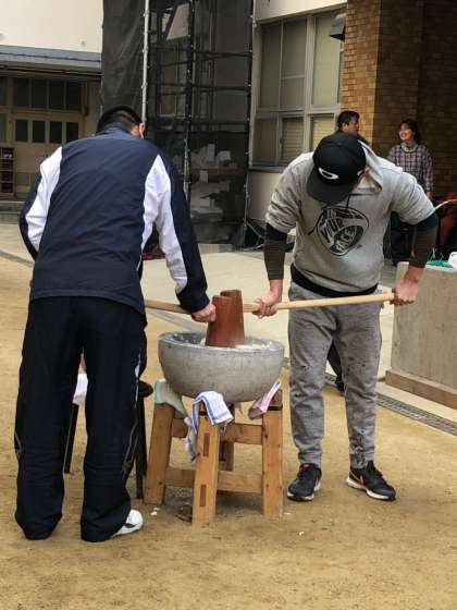 12月9日(日)の午前中に、新平の中庭でPTA親子ふれあいもちつき大会が行われました。