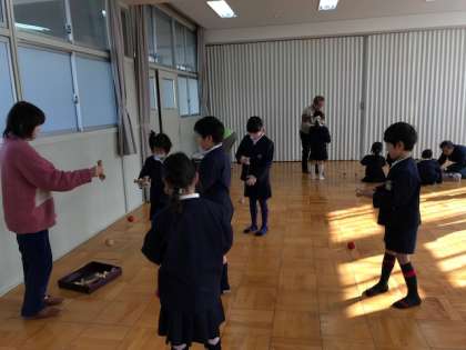 1月17日、地域の皆さんに来ていただき昔遊びを教えていただきました。