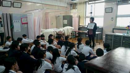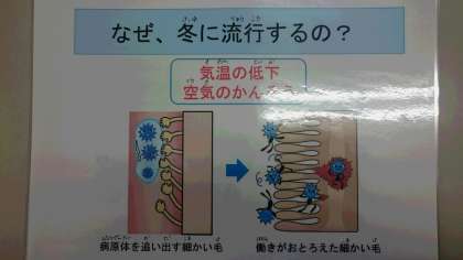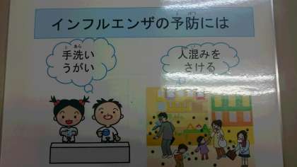 3学期の発育測定が全学年終了しました。身長と体重を測定する前に、爪のチェックや保健指導も行っています。今回の保健指導は、「インフルエンザについて」でした。風邪との違いや感染の原因、予防方法などの話を聞きました。