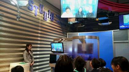 グループに分かれて、番組の作り方を学んだり、実際に撮影に使われた大道具を触ったりしました。他にも、お天気キャスター体験やニュースキャスター体験もしました。