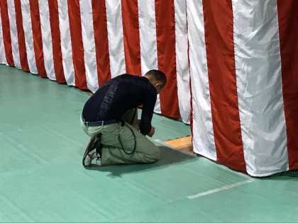 卒業式に向けて、今日体育館にシートを引くなどの準備をしました。