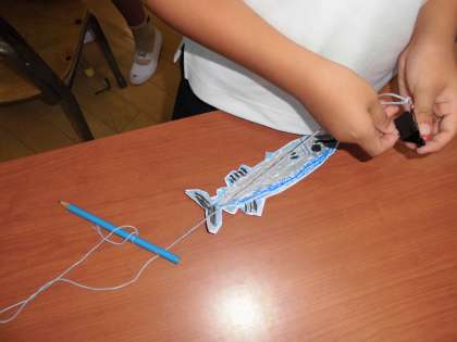 一人ひとり作った魚に磁石を付けて、みんなで魚釣りです!