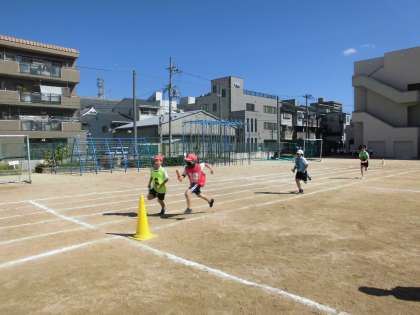 運動場一周を一生懸命に走りました!