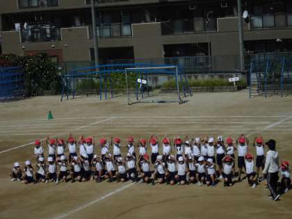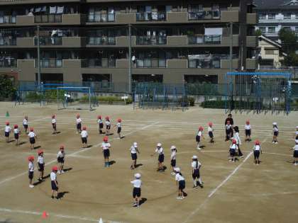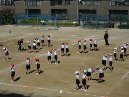 1年生も運動場で軽快なリズムに乗ってダンスを踊りました!