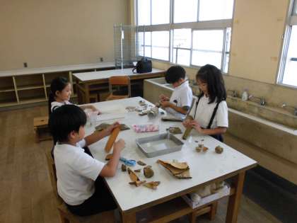 3年生の図工は、だんボールの形を変えながら感じたこと、表したいことを見つけて活動していきました。