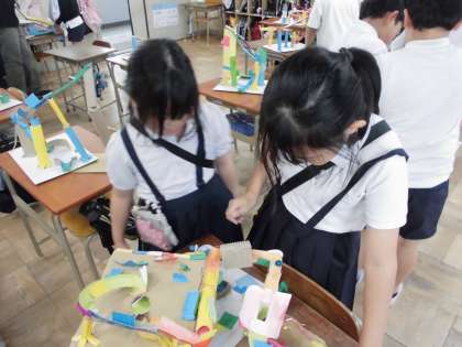 みんなのアイデアいっぱいのコースで、ビー玉の楽しい動きを作りました!!