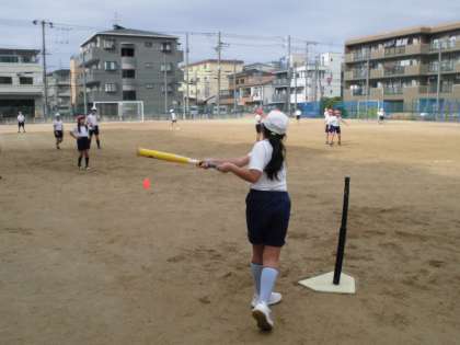 バットを短く持ったり長く持ったり、それぞれ工夫しながら取り組みました。