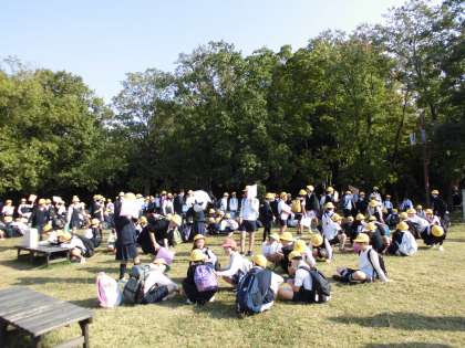 たてわり班でオリエンテーリングを行い、高学年のみんなが1・2年生に優しく気遣う姿も見られ、けがや迷子もなく全員楽しく過ごすことができました!!