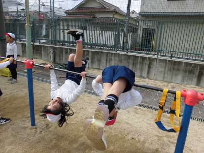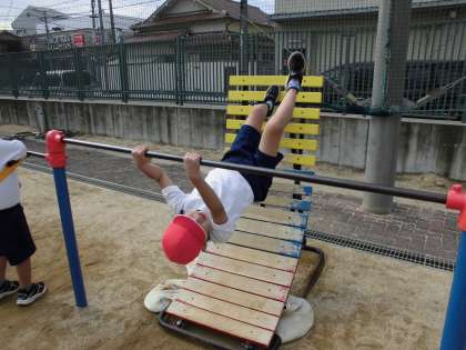 しっかり腕を振ってボールを投げたり、足を蹴り上げて逆上がりの練習をしました。