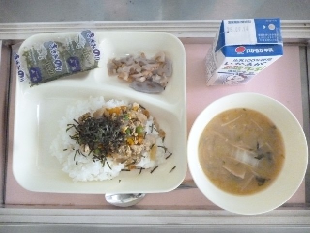 〇鶏ごぼうご飯、きざみのり