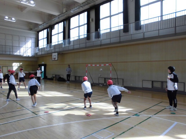 今日は5年生がトップアスリート夢授業で、大阪ラヴィッツハンドボールクラブの選手にハンドボールを教えていただきました!