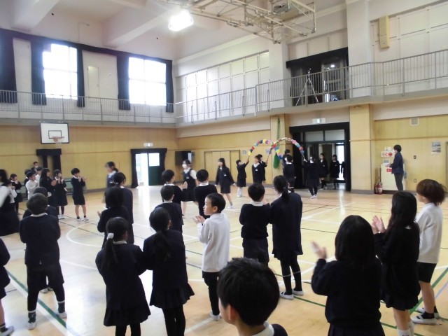 縦割り班でのクイズもあり、全校で過ごす貴重な時間となりました。楽しくもあり、卒業生との別れに寂しさも感じる会になりました。