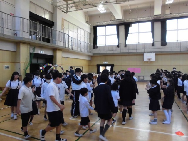 今日は、1年生を迎える会でした。6年生が手をつなぎ入場しあたたかい会になりました。昨年から準備をすすめてくれていました。2年生から入学お祝いのメダルをもらい嬉しそうでした。1年生は、みんなの前にたっているときも静かに立つことができてすばらしかったです。1年生を迎える上級生はおにいさん、おねえさんの表情になっていました。