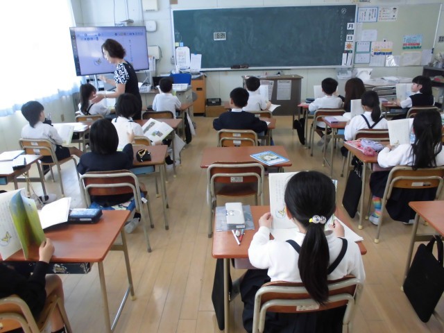 2年生の教室では、音読をしていました。句読点に気をつけてみんなで声をそろえて音読したり、役割読みをしたりして取り組んでいました。
