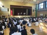 今日の児童集会は、21日土曜日に中国語弁論大会で発表した児童が全校児童に向けて発...