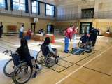 5年生が出前授業で車いす体験を行いました。実際に斜面や間隔の狭いところを車いすで...