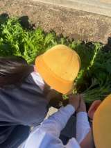3年生が理科の学習で、野菜の収穫をしました。水菜のつくりを知り、傷めずに収穫する...