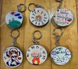 体育館でペンダント作りです。 まずはペンダントの両面をヤスリで磨いています!