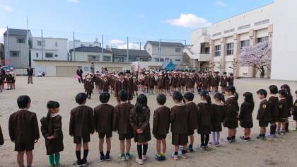 1年生がはじめて2〜6年生の在校生と対面しました。1年生は「は」「あ」「と」を合言葉にがんばるので、在校生は、1年生が困ったときにやさしく助けてあげてくださいね。