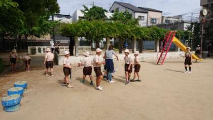 今週の生活目標は「ぼうしをかぶり、名札をつけて登校しよう!」です。日差しがきつい時期です。熱中症にならないためにも、ぼうしは必需品です。外遊びをするときにも着用しましょう!おはよう公園清掃は5−1が担当でした。週の初めをすがすがしい気持ちでスタートできそうです。