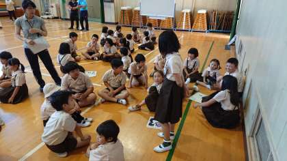 全校児童が少ないことを強みとして、本校では1〜6年までの縦割りグループをつくり、それを核とした児童集会「天茶っ子集会」に取り組んでいます。10連休、遠足が続き、本日ようやく第1回の集会を行いました。今日は自己紹介です。メンバーの顔と名前をしっかり覚えましょうね。