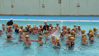 子どもたちの夢や目標を見つけるサポートをし、スポーツへの興味・関心を高め、体力向上を図るために、大阪市が一流選手を派遣する「トップアスリート『夢・授業』」を実施しました。アテネオリンピック200mバタフライの銅メダリストである中西悠子さんから、泳ぎの上達するポイントを教えていただきました。